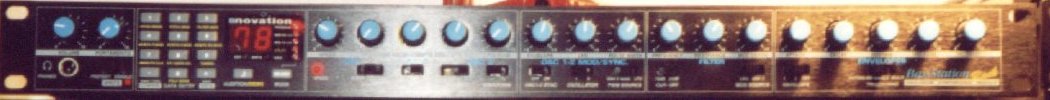 The Bass Station was originally available in the form of a small 2 octave keyboard (with octave shift) housed in a rather cheap looking plastic case. It had good sounds and as far as I know was Novation's first product of this type. Since then the Bass Station sold well and Novation's products have improved in both features and apparent quality! By the time I decided to buy one they had just brought out the rack version so I got that. The Bass Station is an analogue style monosynth which offers almost full control of it's parameters over MIDI. It has 3 oscillators, - two of which combine to make the audible sound and the last one modulating that sound in some way giving vibrato or automated filter sweeps.